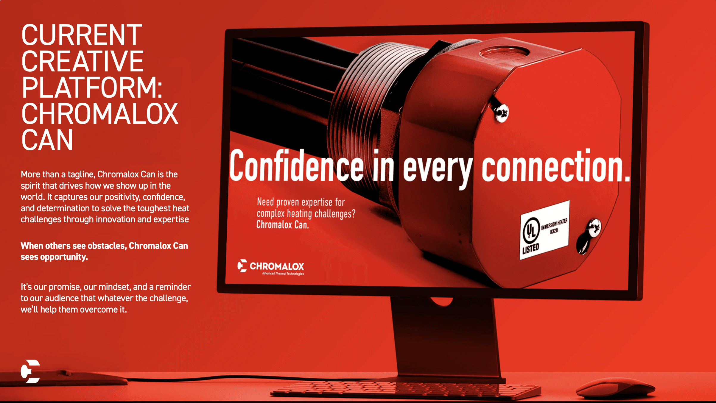 Chromalox has been engineering industrial heating solutions for over a century, but their customers are facing new pressures: decarbonization, rising costs, tightening regulations. They needed a creative platform that positioned them not just as a supplier, but as the confident, capable partner who could help navigate what's next.