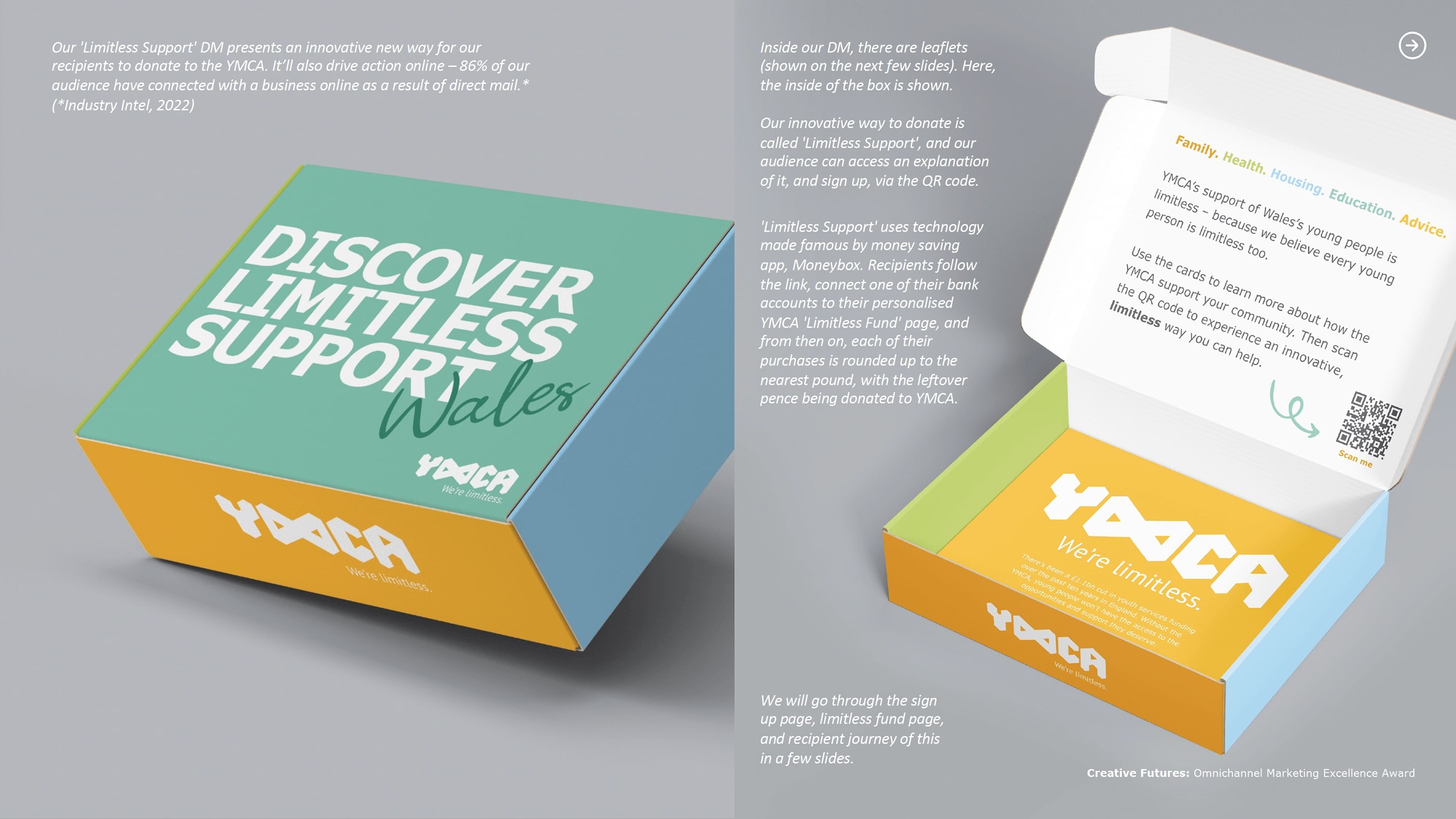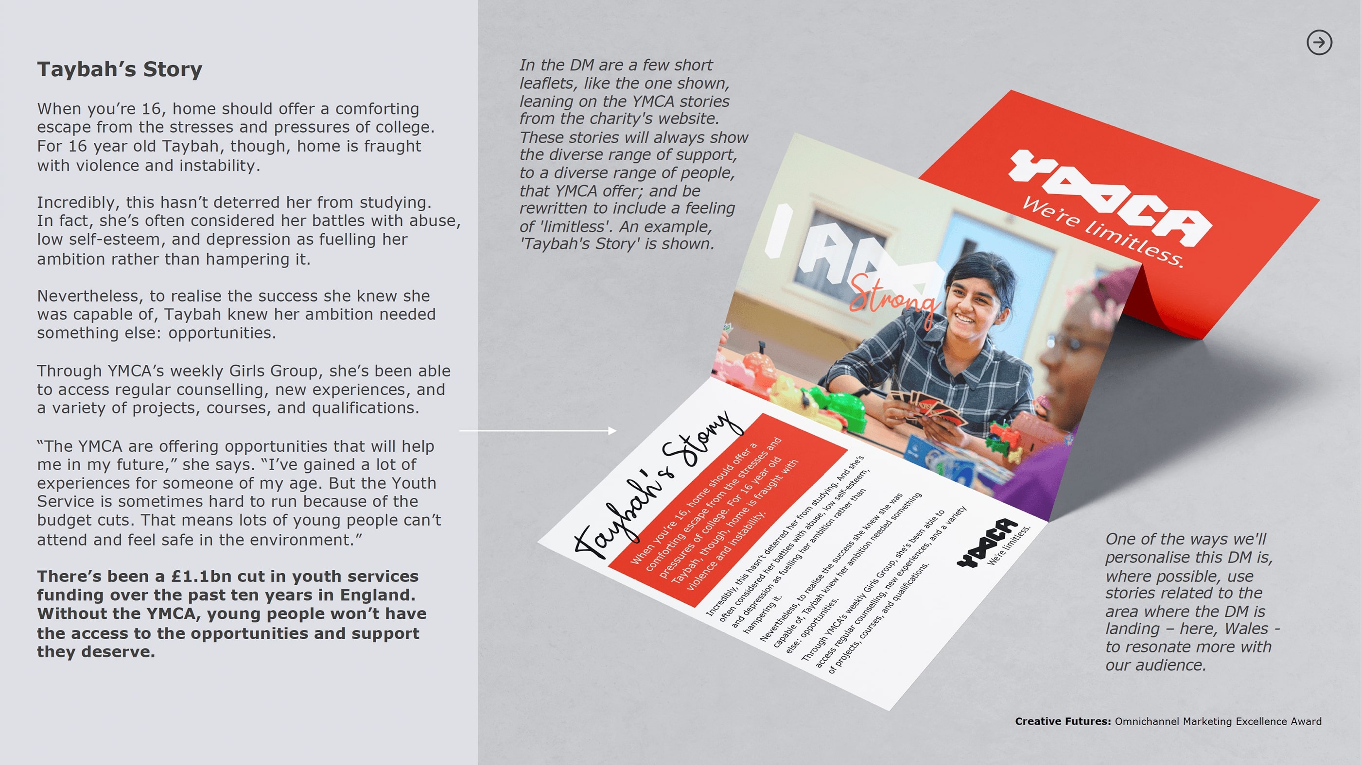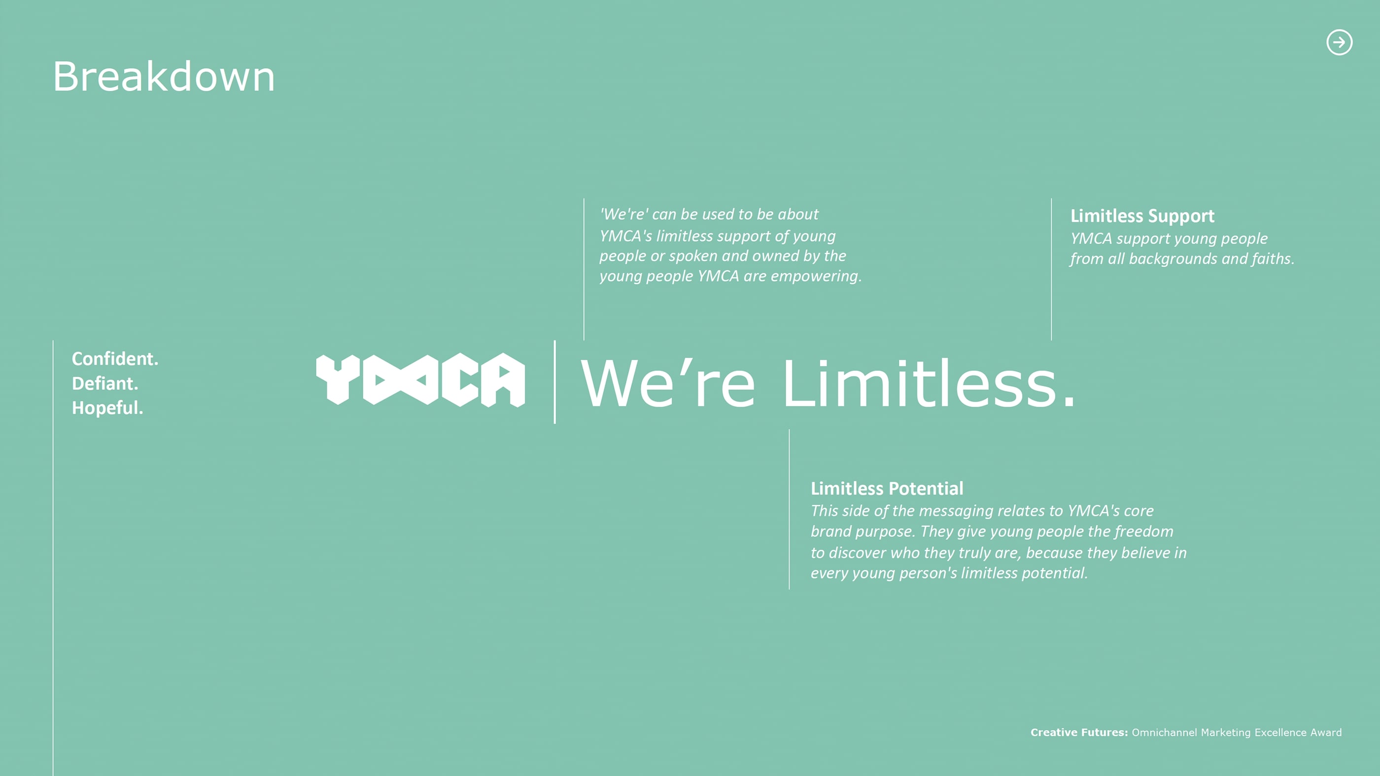 What YMCA stands for isn’t actually what YMCA stand for. They don’t just support young Christian men; they support young people of every gender and background. Unfortunately, not enough people knew it. So, we changed the ‘M’ for ‘Men’ in YMCA to an infinity sign ‘for all’. And the ‘Limitless’ campaign was born.