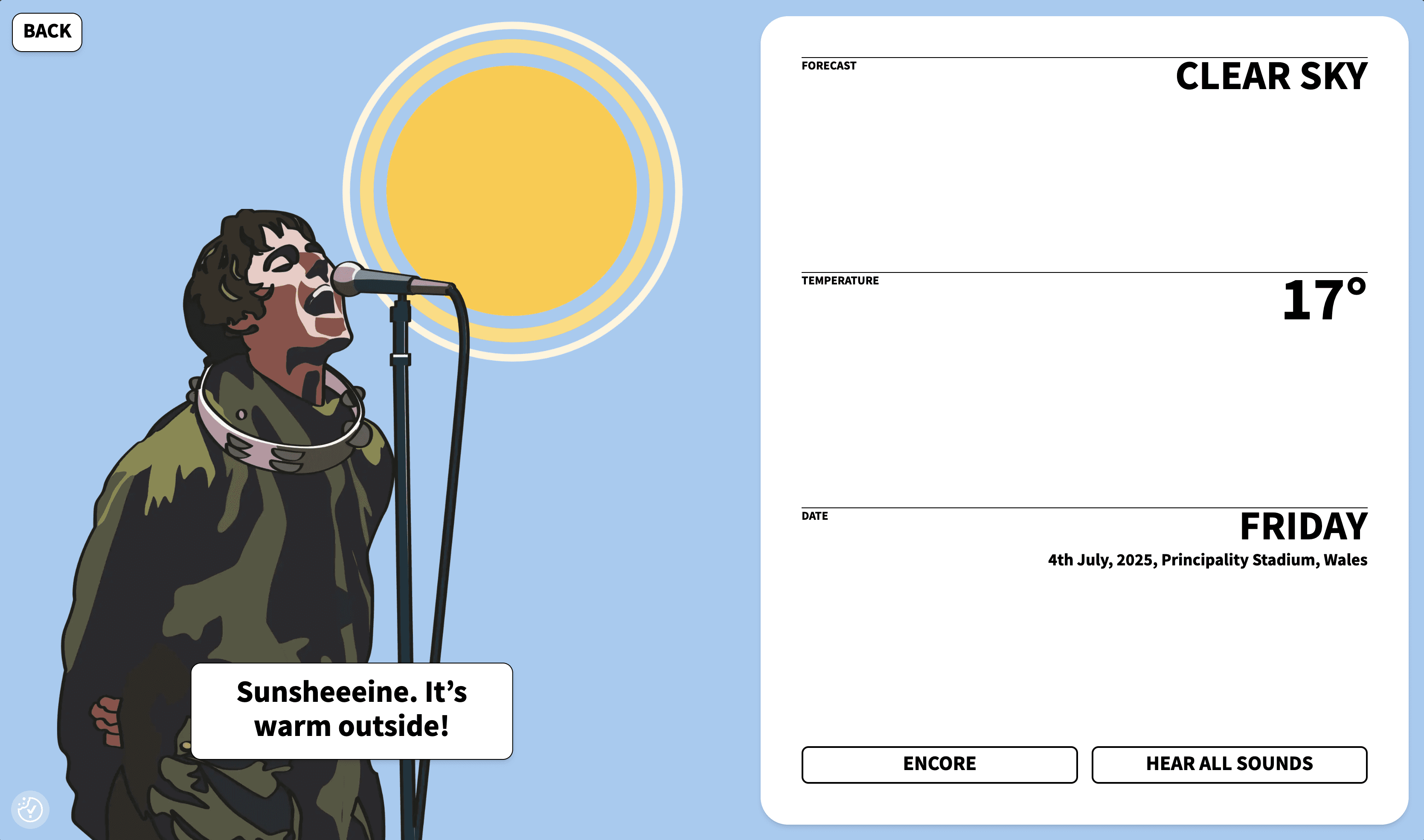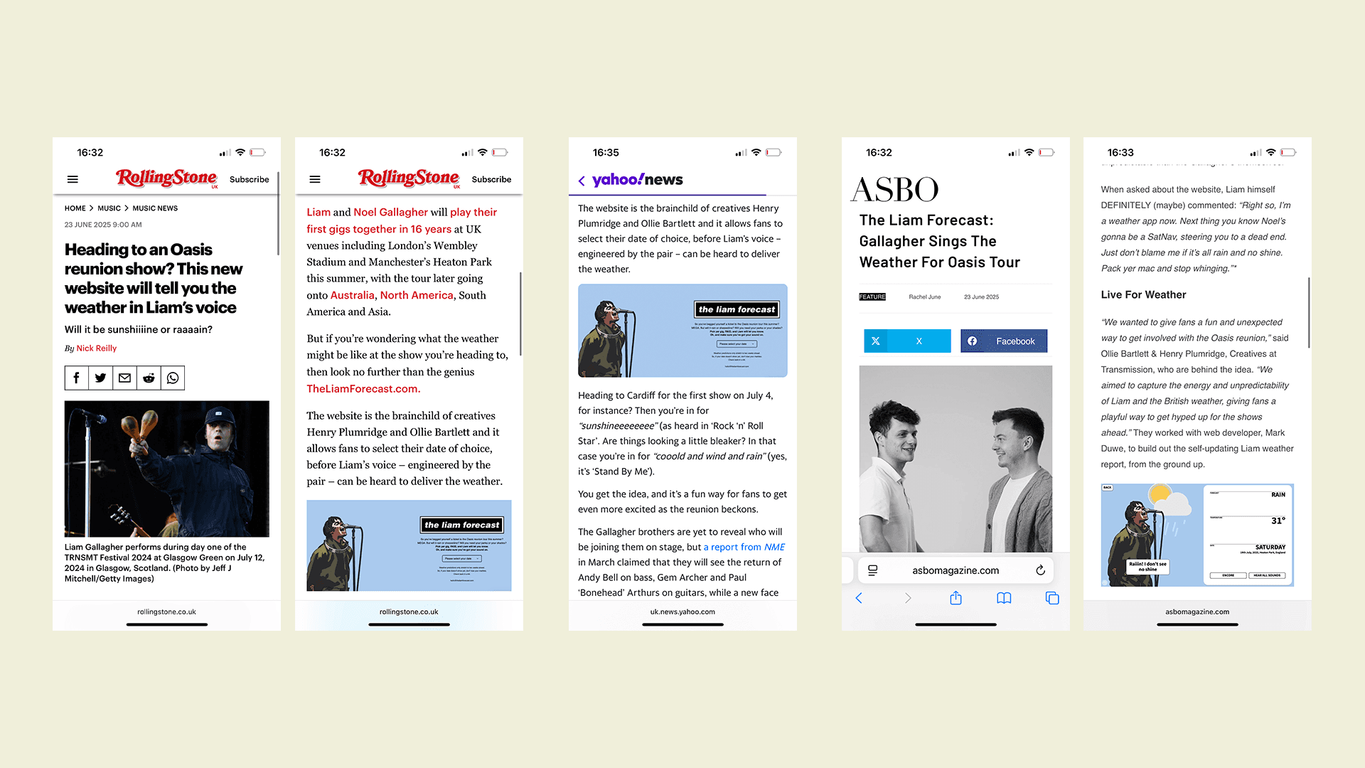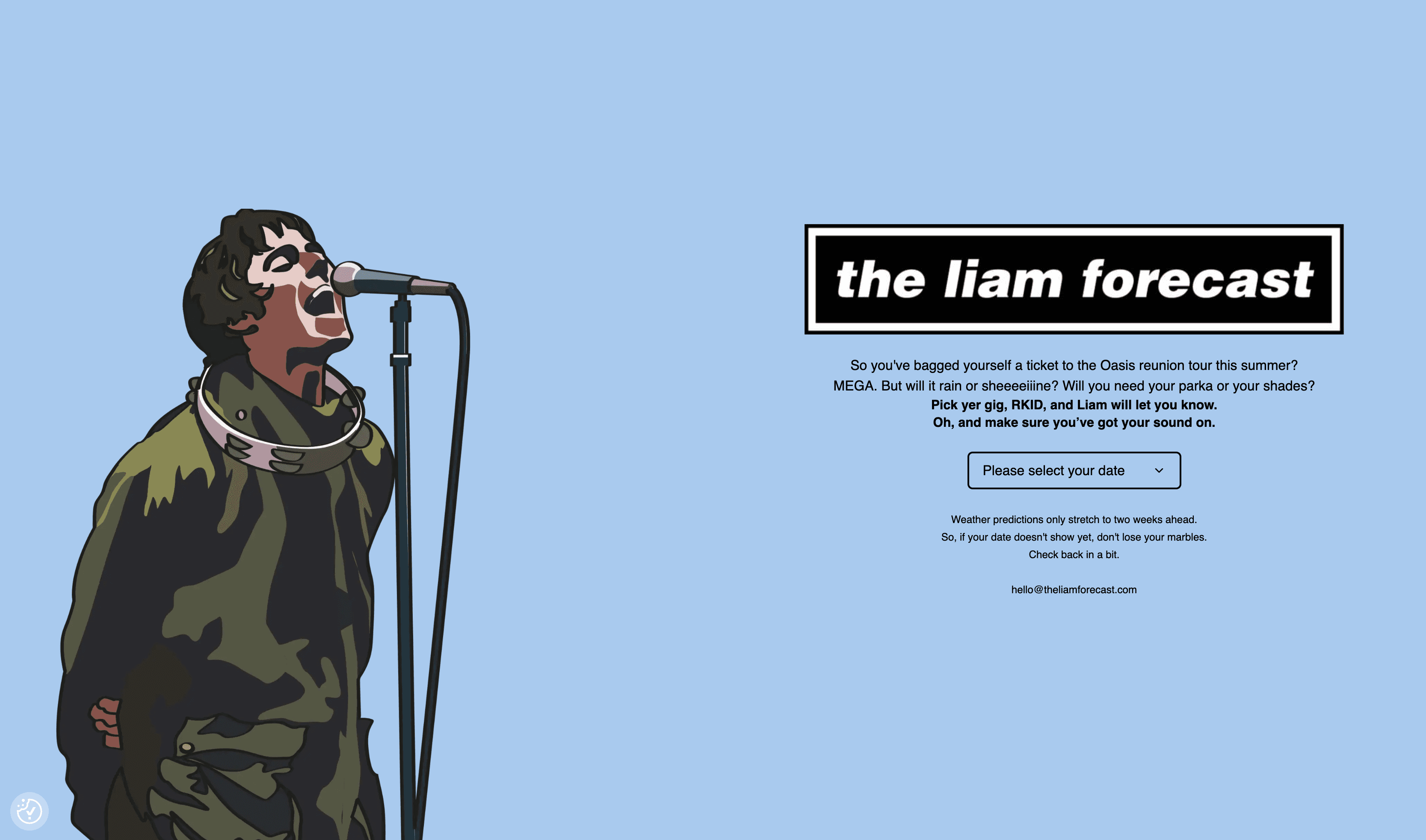 theliamforecast.com is a weather website where Liam Gallagher sings you the actual weather forecast for the Oasis reunion gigs. Launched in Rolling Stone UK.